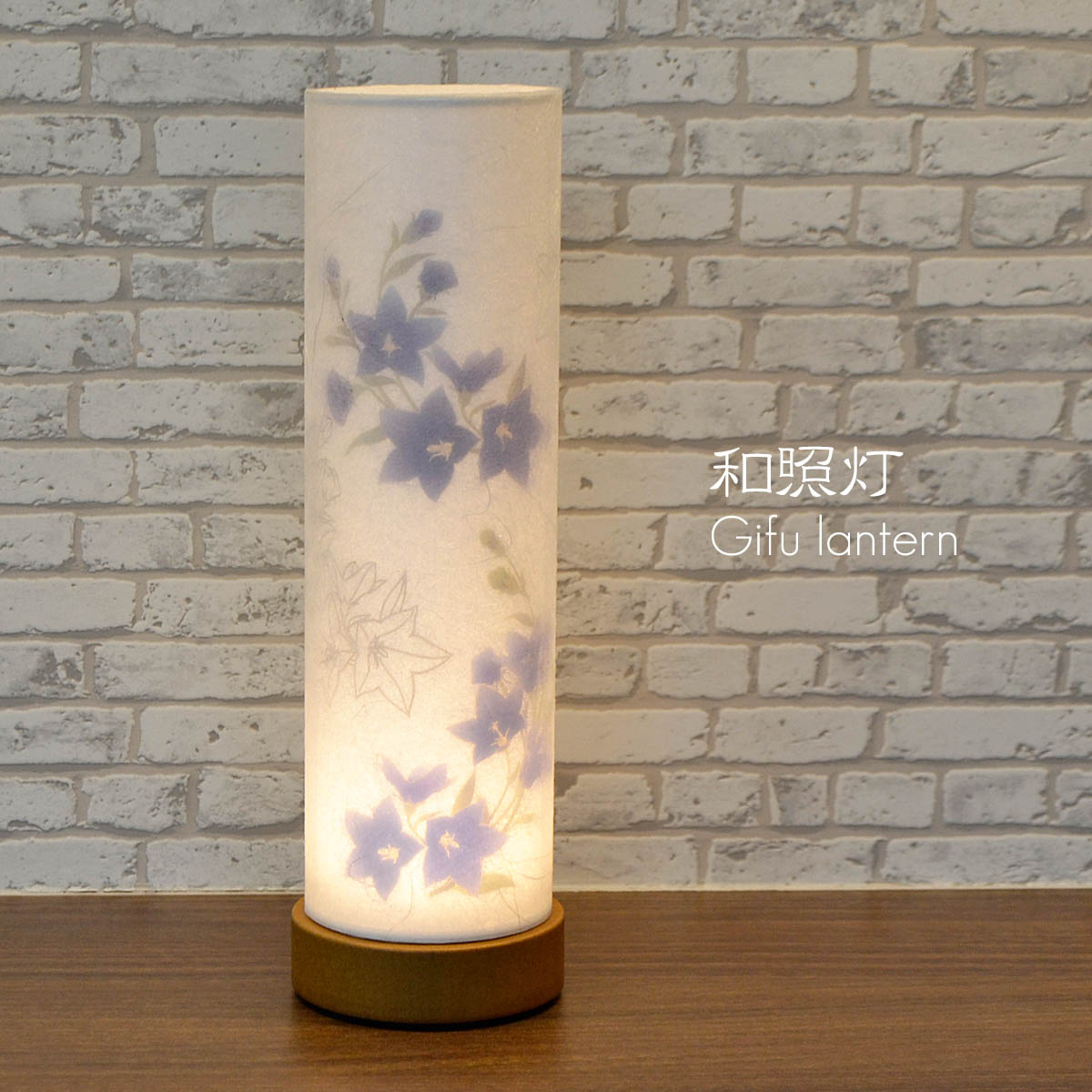 コンパクト盆提灯 和照灯 1基 コードレス 電池式 LED 桔梗 高さ26cm 直径8cm 紫の花柄 024 インテリア提灯 おしゃれな提灯 岐阜ちょうちん 和風行灯 二重張り