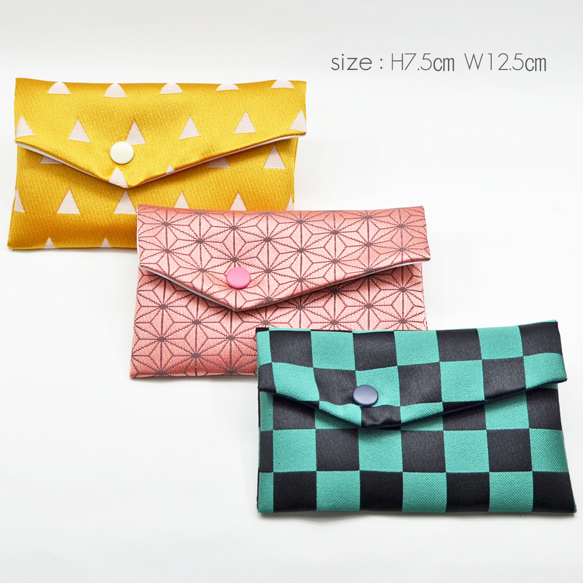 子供用念珠ケース 055 市松模様×グリーン 麻の葉模様×ピンク 鱗模様×イエロー 鬼滅 西陣織 金襴 数珠袋