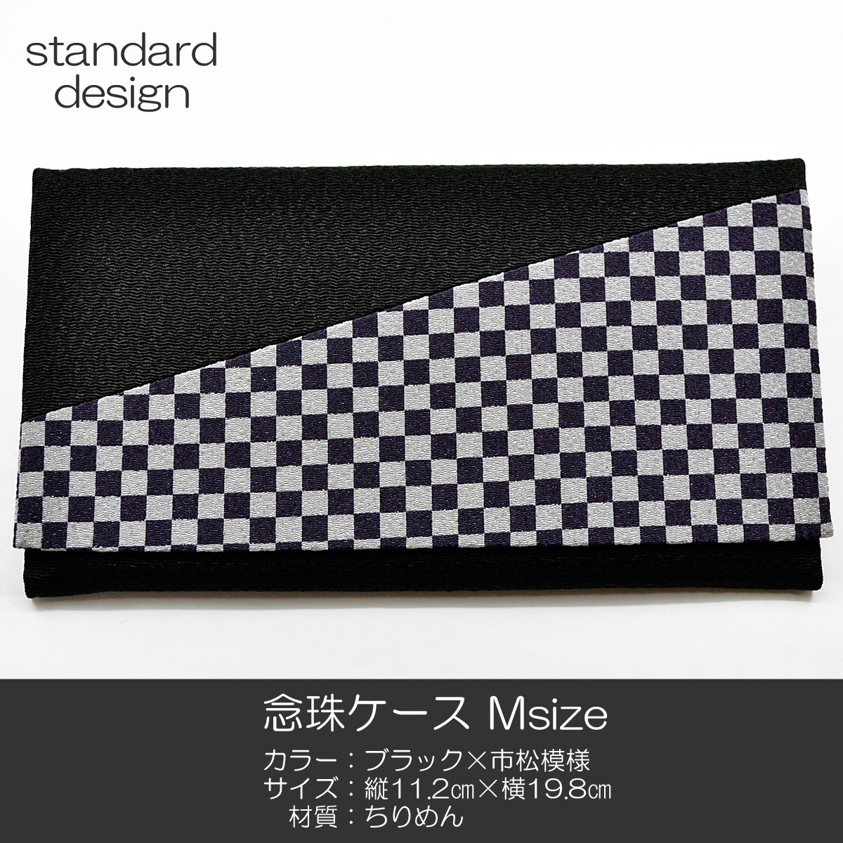 念珠ケース Mサイズ 創価学会数珠ケース 数珠袋 018 ブラック×市松模様 ちりめん 創価学会用 SGI SOKA