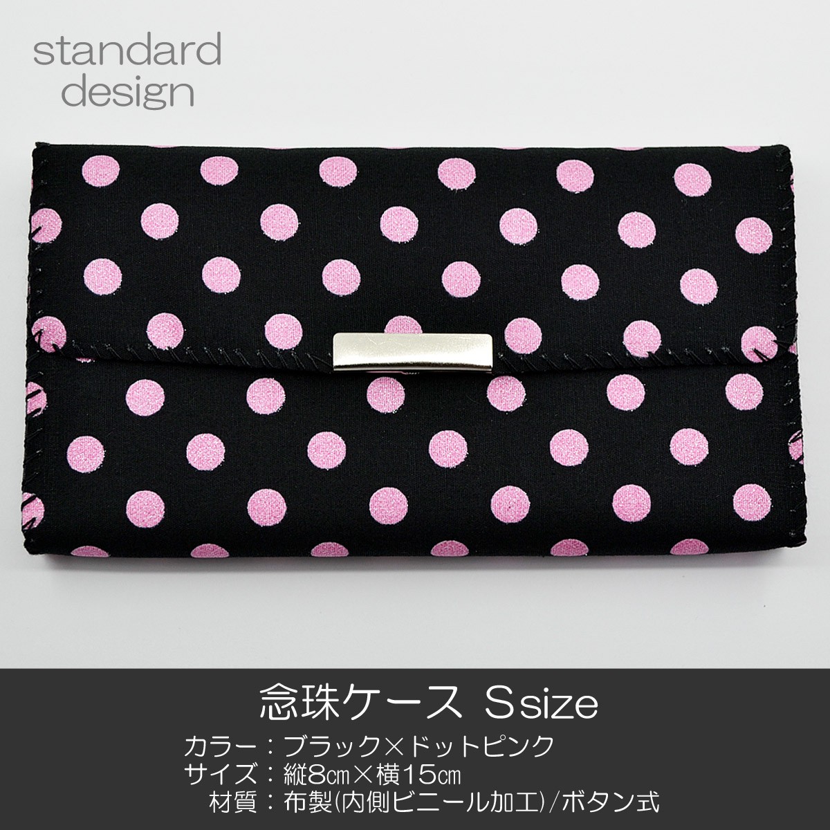念珠ケース Sサイズ 創価学会数珠ケース 数珠袋 068 ブラック×ドットピンク 布製 創価学会用 SGI SOKA