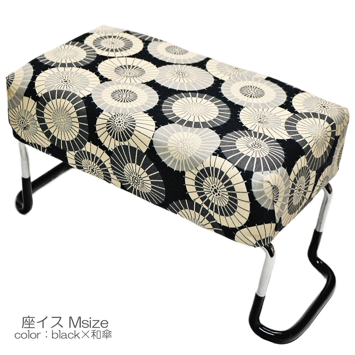 座イス Mサイズ 036 ブラック 黒 和傘柄 座椅子 折りたたみ式 お仏壇用 正座イス