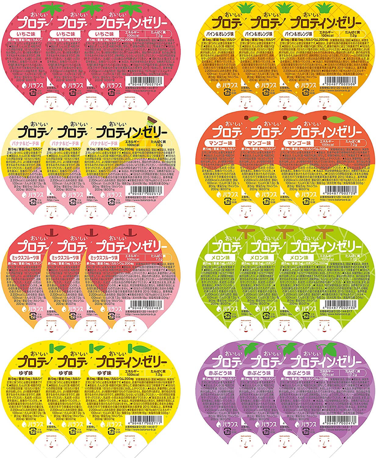 バランス おいしいプロテインゼリー詰め合わせ 8種各3個(24個セット)栄養補助食 カロリー補給 たんぱく質補給 介護食 高齢者 詰合せ