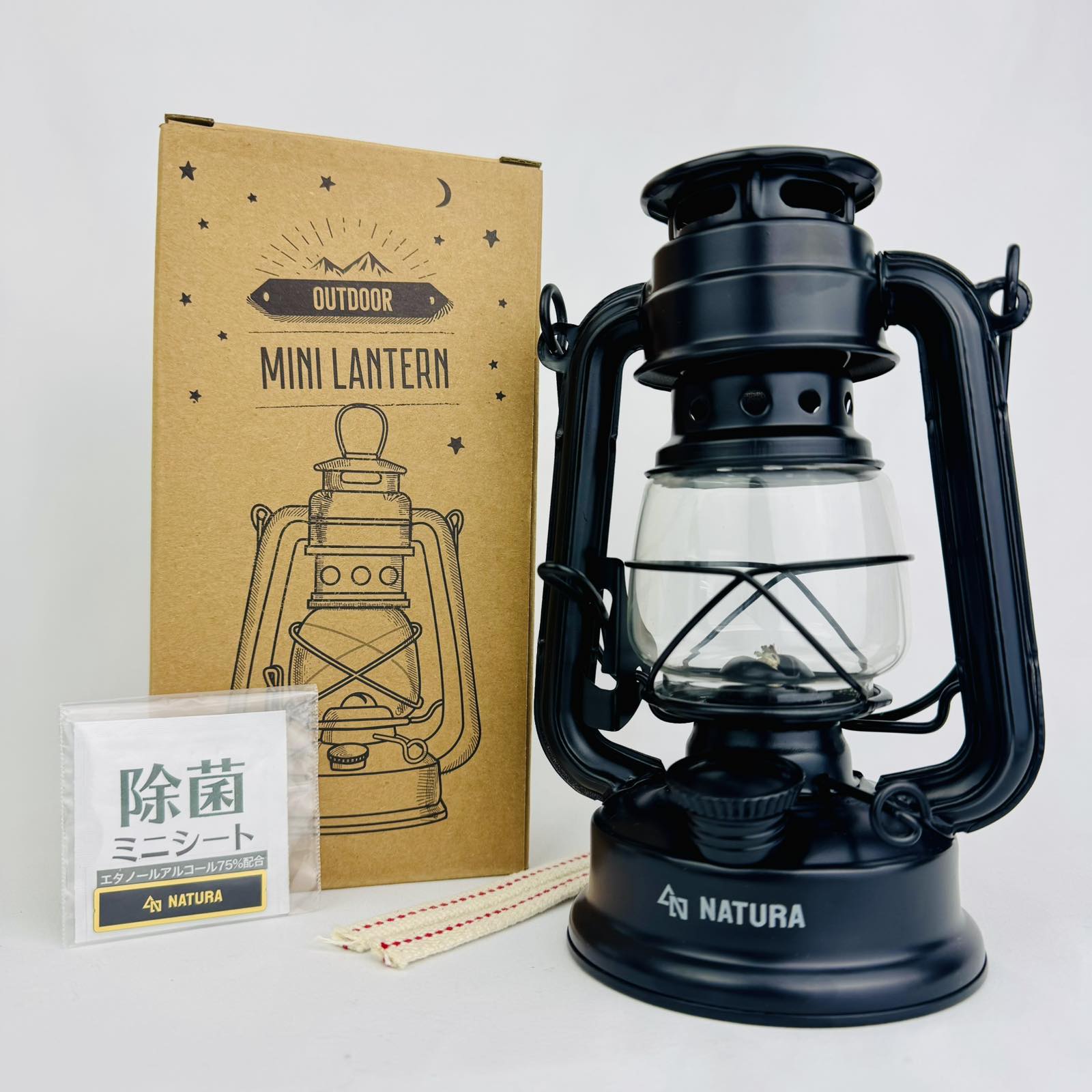 アウトレット 小型オイルランタン オイルランタン ミニ 小型オイルランタン マットブラック キャンプ アウトドア 替え芯 NATURA 真鍮ネームプレート 付き