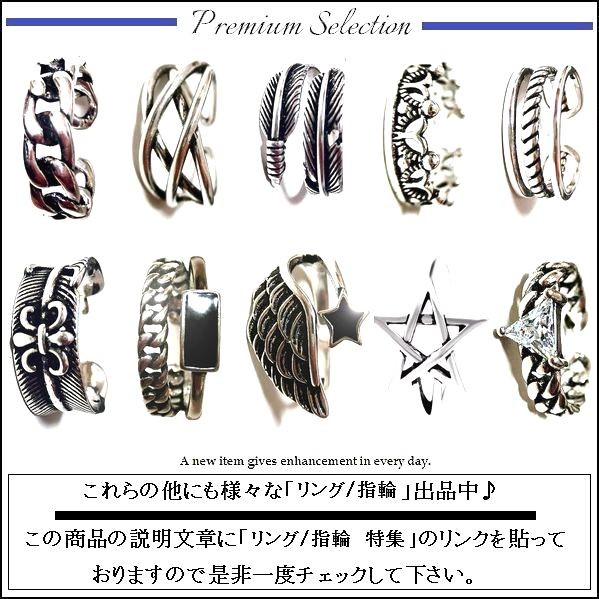 | Condition (状態) | 新品 ◆フリーサイズが嬉しい♪オシャレな「デザインシルバーリング」。 ◆こだわった3つのポイント。 「長年使える上質なデザイン」 「高級感あるシルバーの光沢」 「フリーサイズなのでサイズ調整が可能」 ◆ただ今購入して頂くと「高級ベロア調」の「ジュエリーポーチ」付きです♪ 当アイテムの収納、保管、プレゼントに最適です。 ◆ストリート、カジュアル、フォーマル、キレイ目、原宿、サロン、お兄、サーフ、ロック、オラオラetc... どんなファッションジャンル 系統にもピッタリ合わせられる優秀さ。 シルバーリングは是非1個又は複数持っておきたいお洒落で便利な1年中使えるヘビロテアイテムです。 男女兼用アイテムなのでカップルのペアルックもOK。 もちろんプレゼントとしても喜ばれると思います。 | |