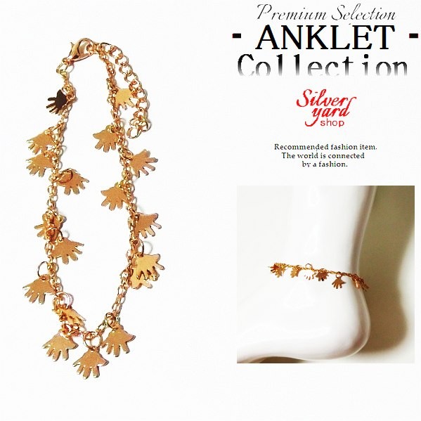 アンクレット メンズ レディース チェーン 手 掌 ハンド 揺れる ゴールド 金 高級感 金属 アクセ ペア 新品 送料無料 プレゼント 男 女 AK037