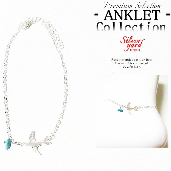 アンクレット メンズ レディース チェーン 鳥 羽根 翼 ターコイズ エメラルド 高級感 セレブ シンプル 金属 シルバー 銀 ペア プレゼント 男 女 AK056