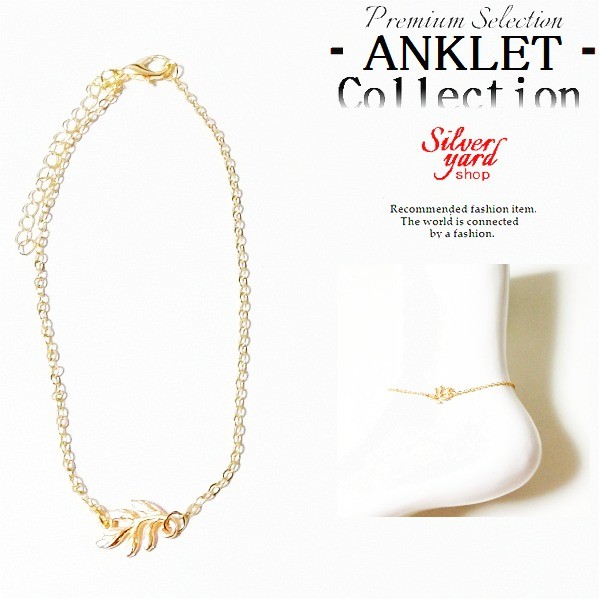 アンクレット メンズ レディース チェーン 葉っぱ リーフ ゴールド 金 高級感 セレブ シンプル 金属 アクセ ペア 新品 送料無料 プレゼント 男 女 AK063