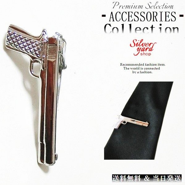 ネクタイピン タイピン タイバー マネークリップ メンズ レディース ピストル 拳銃 銃 シルバー 銀 上質 おしゃれ 新品 送料無料 プレゼント 当日発送 NP215