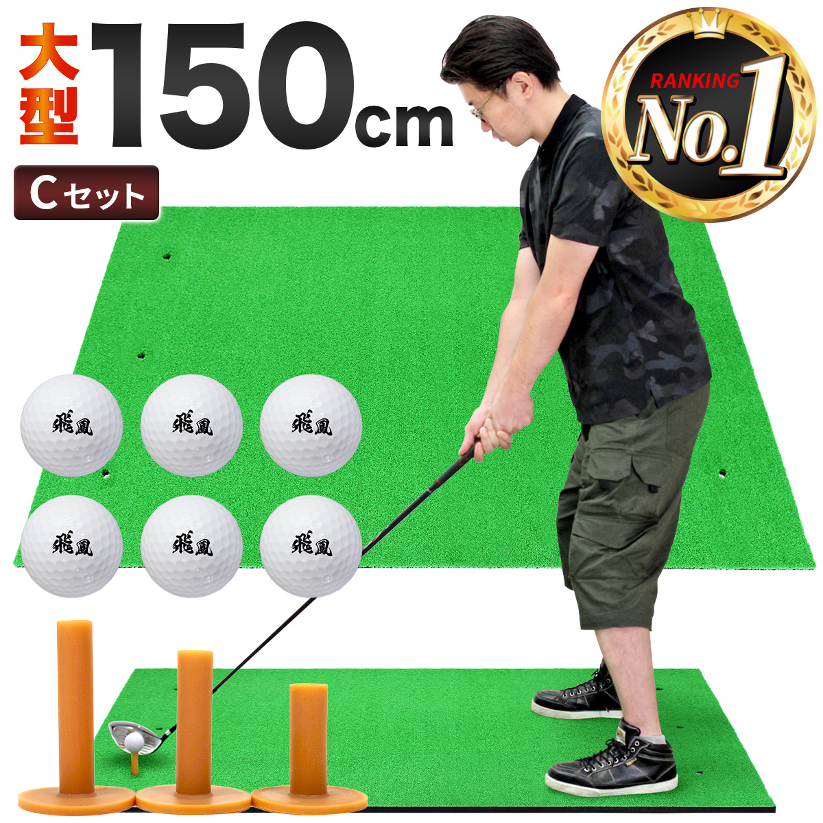 ゴルフマット 大型 ゴルフ 練習 マット 素振り ドライバー スイング パター 練習器具 室内 屋外 人工芝 SBR 100×150cm ゴルフティー ゴルフボール Cセット