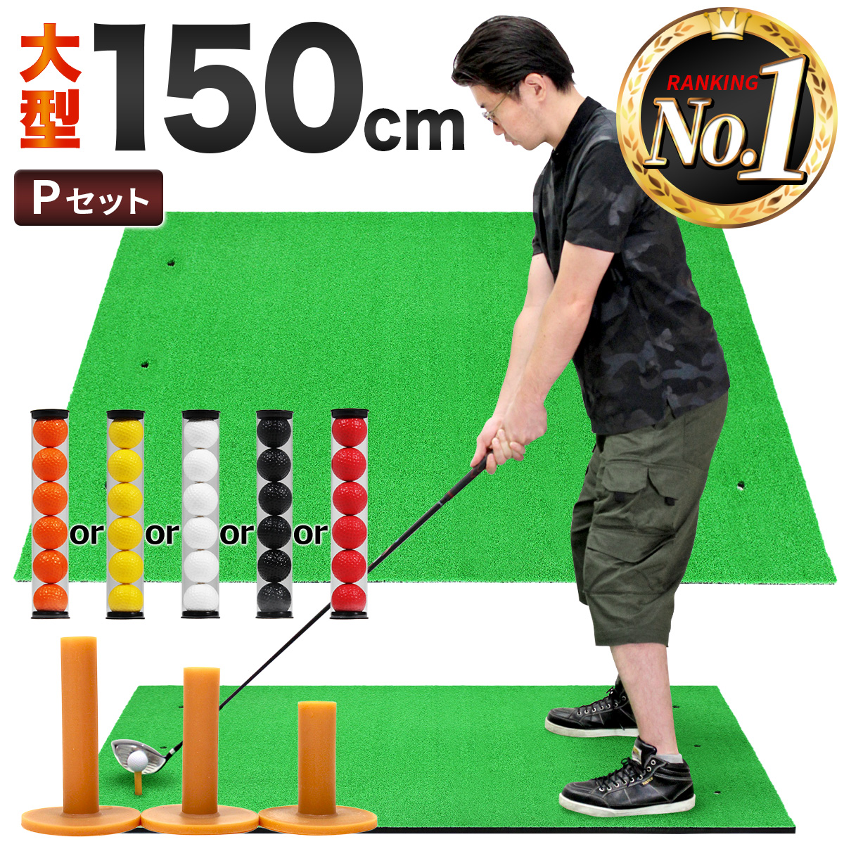 ゴルフマット 大型 ゴルフ 練習 マット 素振り ドライバー スイング パター 練習器具 室内 屋外 人工芝 SBR 100×150cm ゴルフティー ゴルフボール Pセット