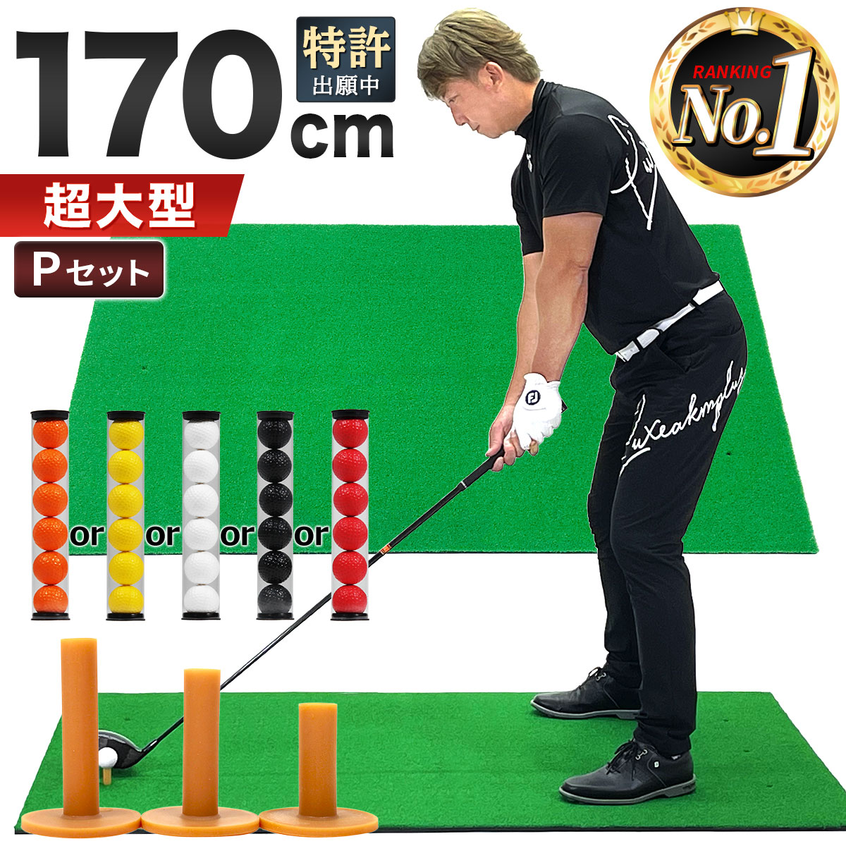 ゴルフマット 大型 ゴルフ 練習 マット ドライバー 素振り スイング パター 練習器具 室内 屋外 人工芝 SBR 100×170cm ゴルフティー ゴルフボール Pセット