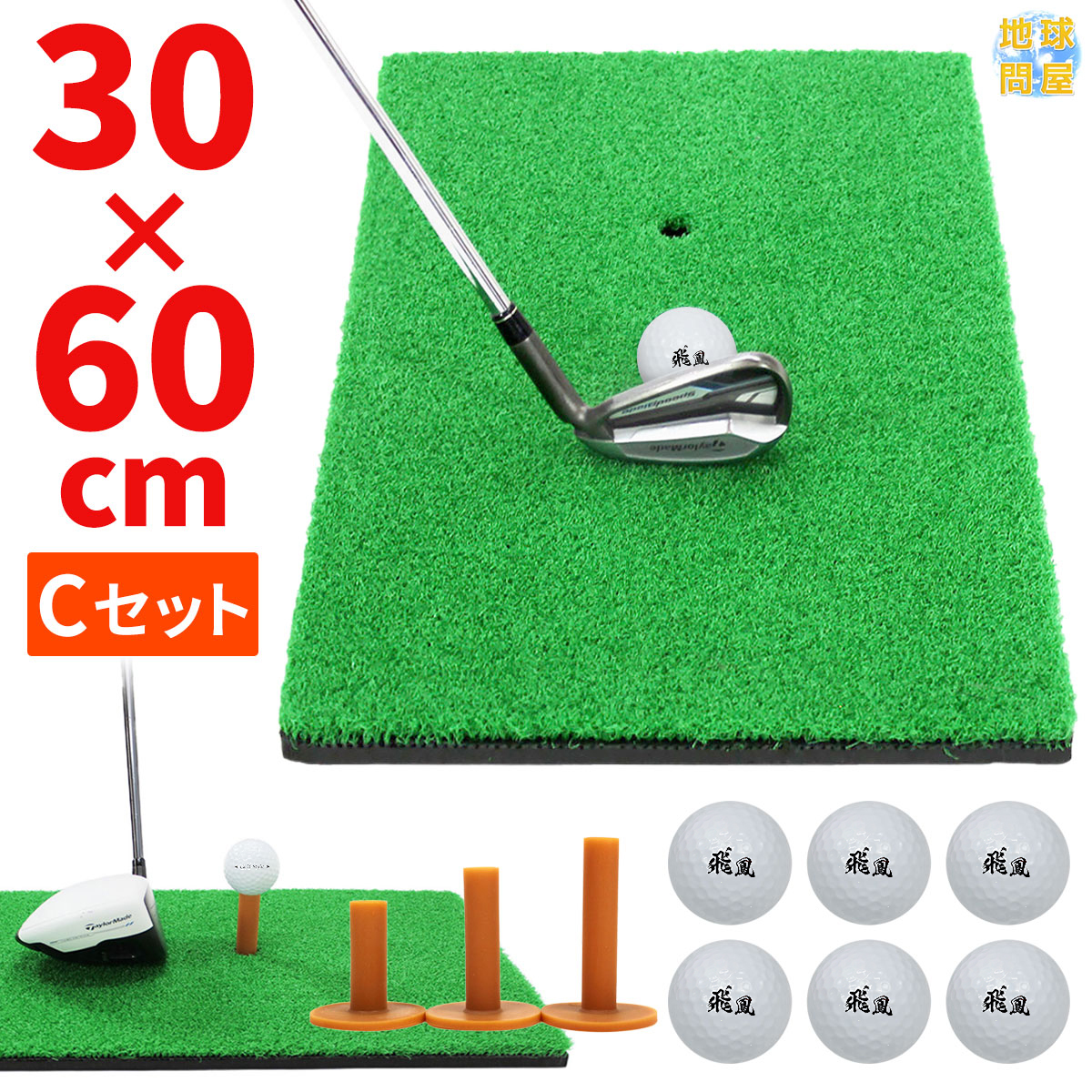ゴルフマット ゴルフ 練習 マット 素振り スイング ドライバー アイアン パター 練習器具 室内 屋外 人工芝 SBR 30×60cm ゴルフティー ゴルフボール Cセット