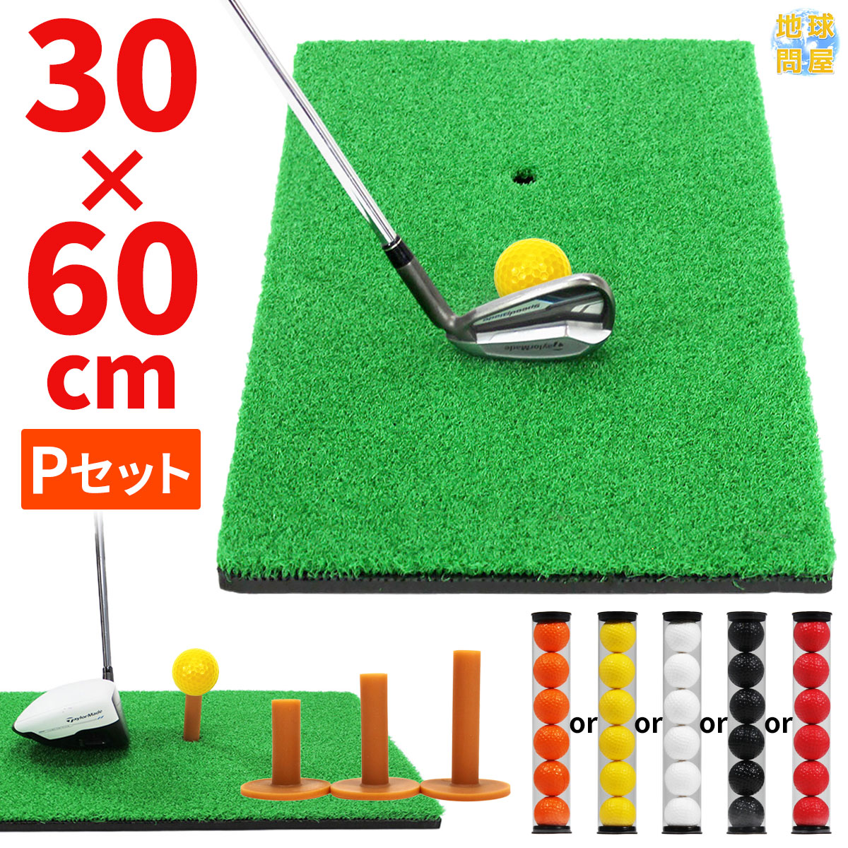 ゴルフマット ゴルフ 練習 マット 素振り スイング ドライバー アイアン パター 練習器具 室内 屋外 人工芝 SBR 30×60cm ゴルフティー ゴルフボール Pセット
