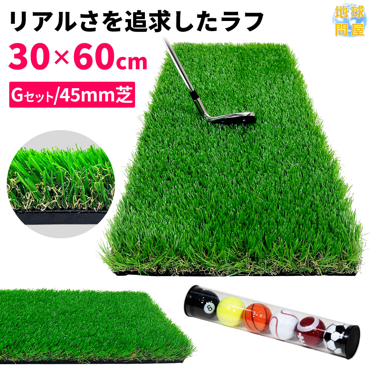 ゴルフマット 45mm ラフ芝 ゴルフ 練習 マット 素振り スイング アイアン アプローチ Rough 室内 屋外 人工芝 SBR 30×60cm 芝生 ゴルフボール Gボールセット