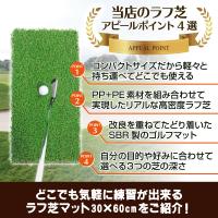 【アプローチ練習用ラフ芝ゴルフマット】ゴルフのスコアを伸ばそうと思ったら、ラフからのショットの精度を上げることは必須事項です。ただ、ラフ芝からのショット練習ができる場所はなかなかないですよね。そんな方にご自宅で簡単に接地できるラフ芝ゴルフマットを開発しました。コンパクトなので練習場に持ち運んで練習することも可能です。