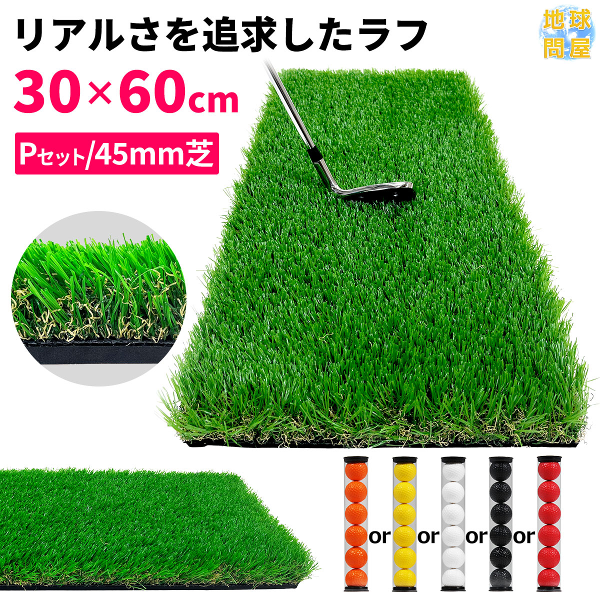 ゴルフマット 45mm ラフ芝 ゴルフ 練習 マット 素振り スイング アイアン アプローチ Rough 室内 屋外 人工芝 SBR 30×60cm 芝生 ゴルフボール Pボールセット