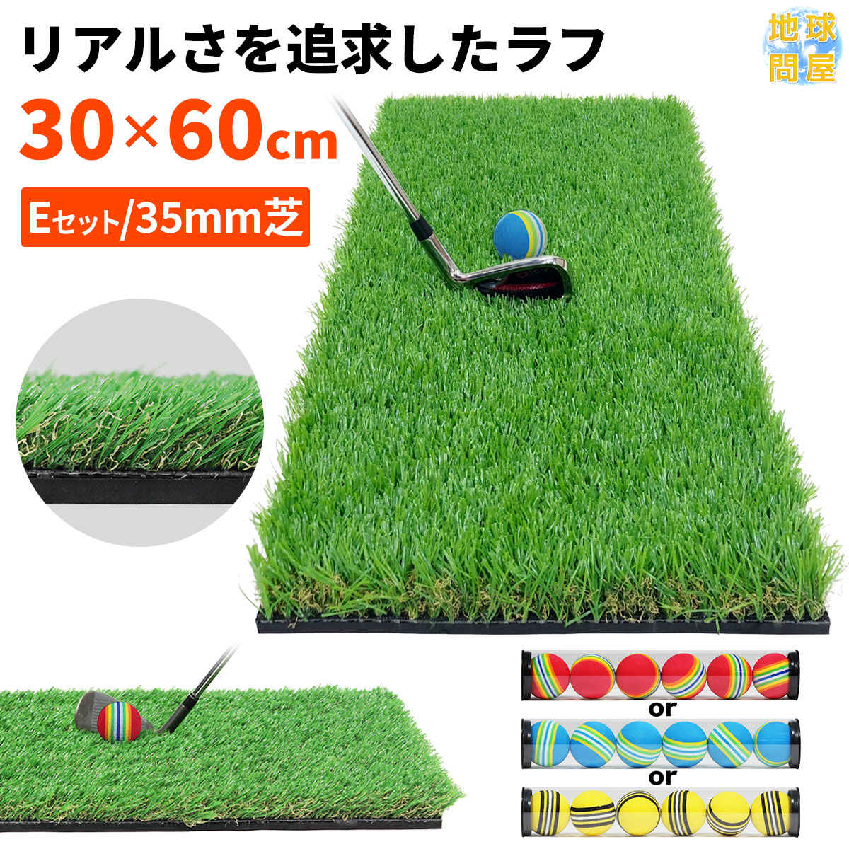 ゴルフマット 35mm ラフ芝 ゴルフ 練習 マット 素振り スイング アイアン アプローチ Rough 室内 屋外 人工芝 SBR 30×60cm 芝生 ゴルフボール Eボールセット