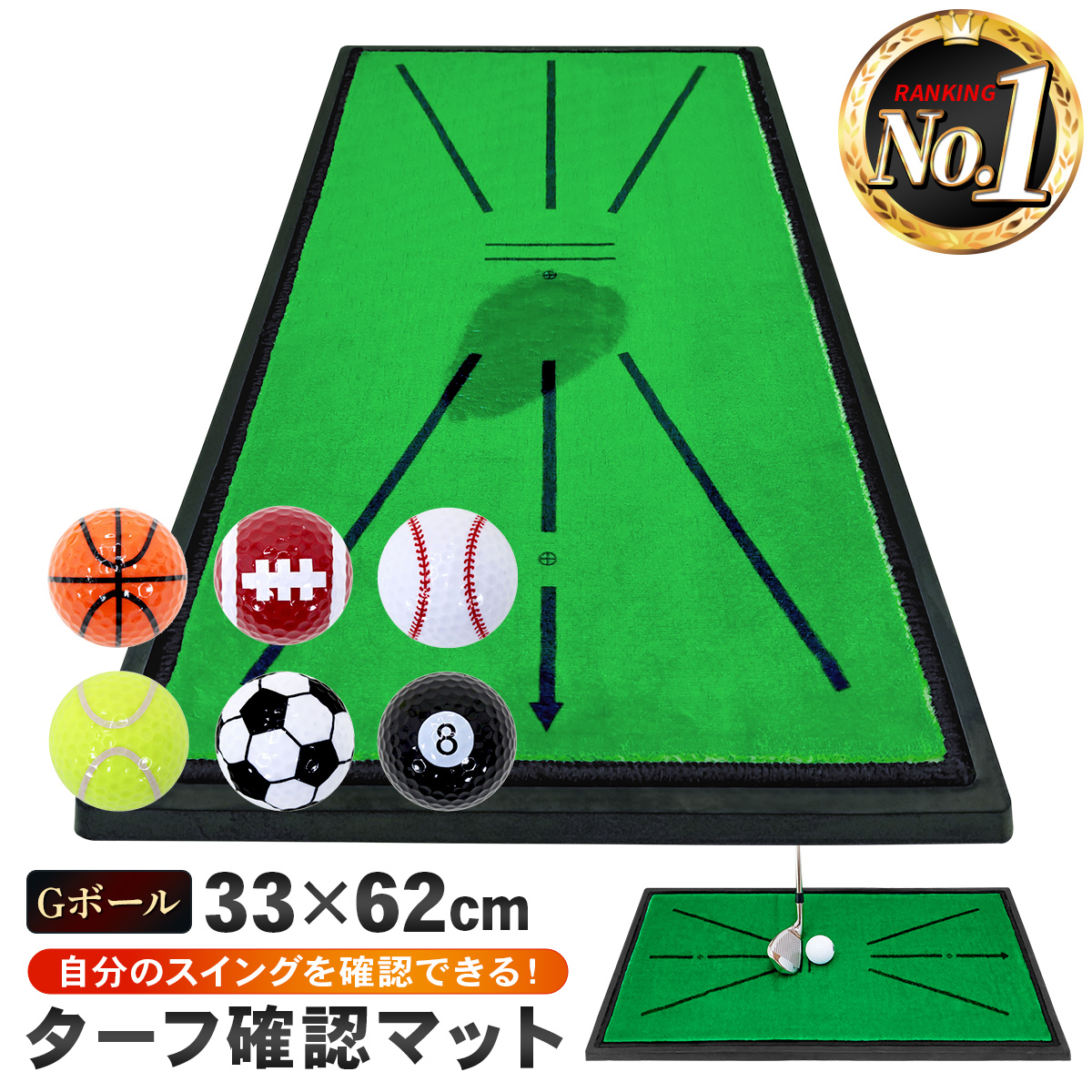 ターフ確認マット、スポーツ柄ゴルフボール6個