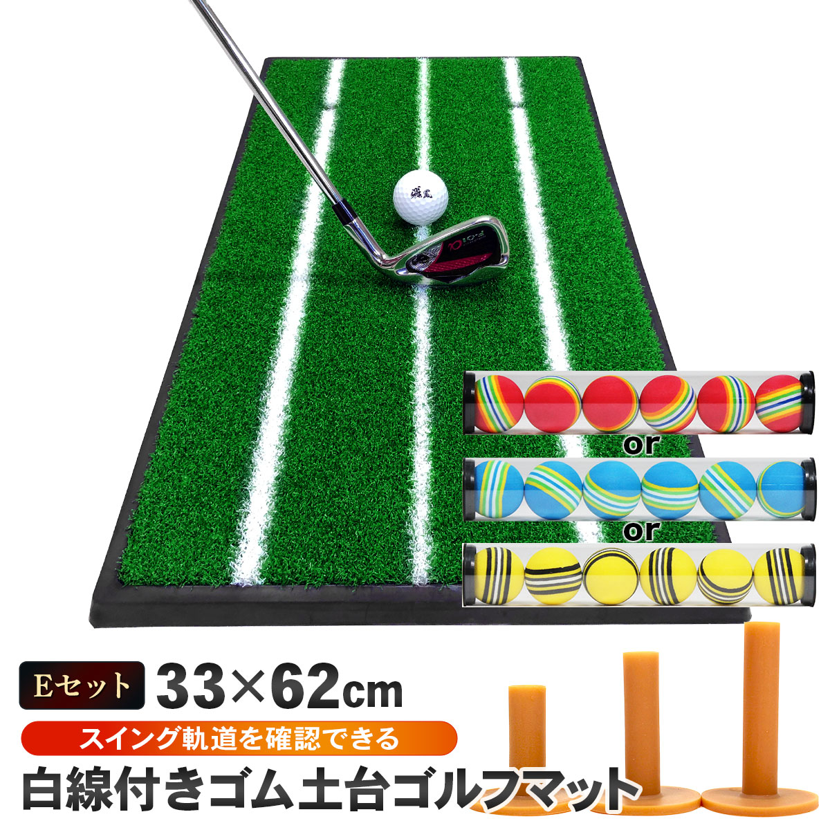 ゴルフマット 白線 ゴルフ 練習 マット ゴム土台 素振り 軌道確認 ドライバー アイアン スイング 練習用 ショットマット 人工芝 ゴムマット 33×62cm Eセット