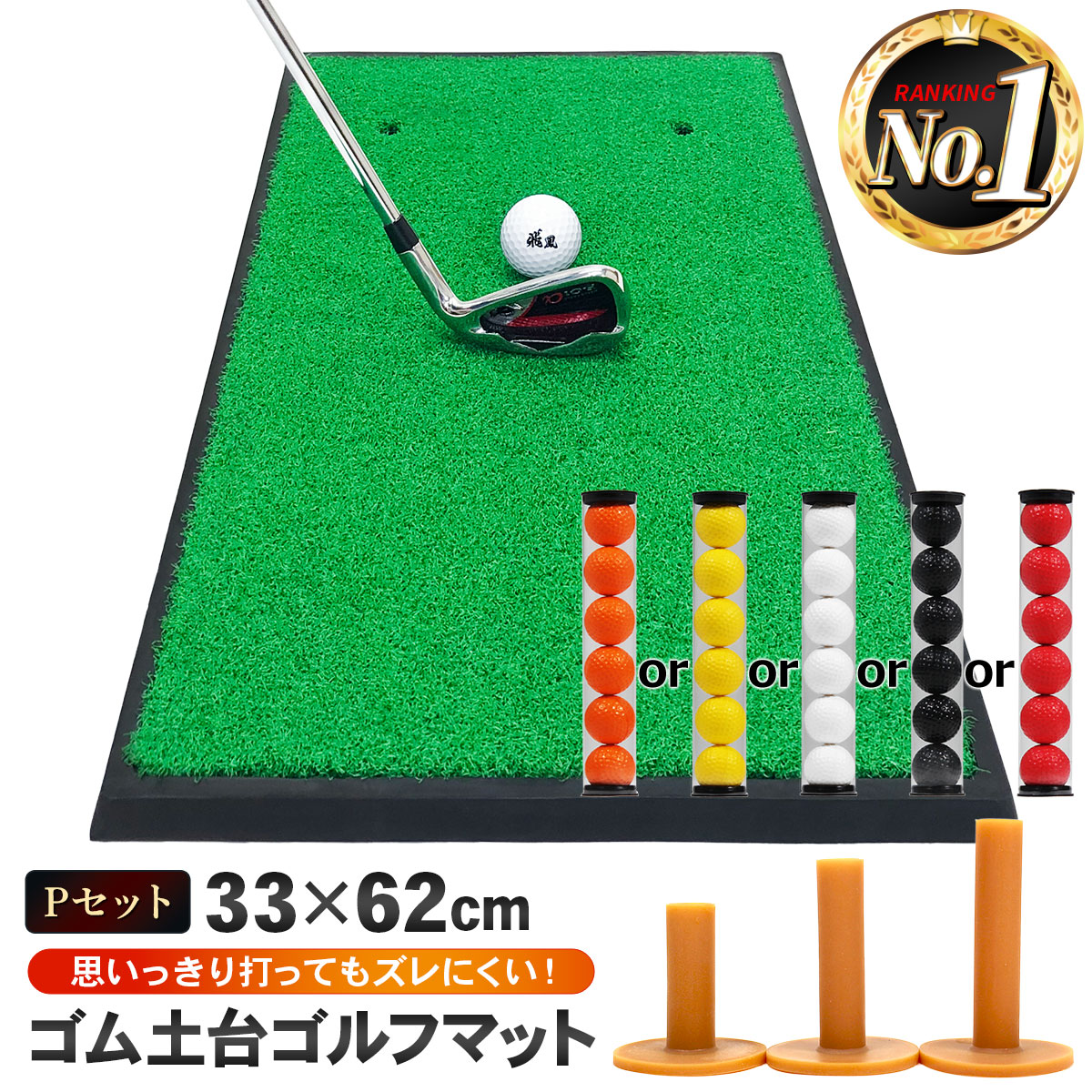 ゴルフマット ゴルフ 練習 マット 素振り スイング 練習器具 室内 屋外 人工芝 ゴムマット フェアウェイ 1WAY 33×62cm ゴルフティー ゴルフボール Pセット