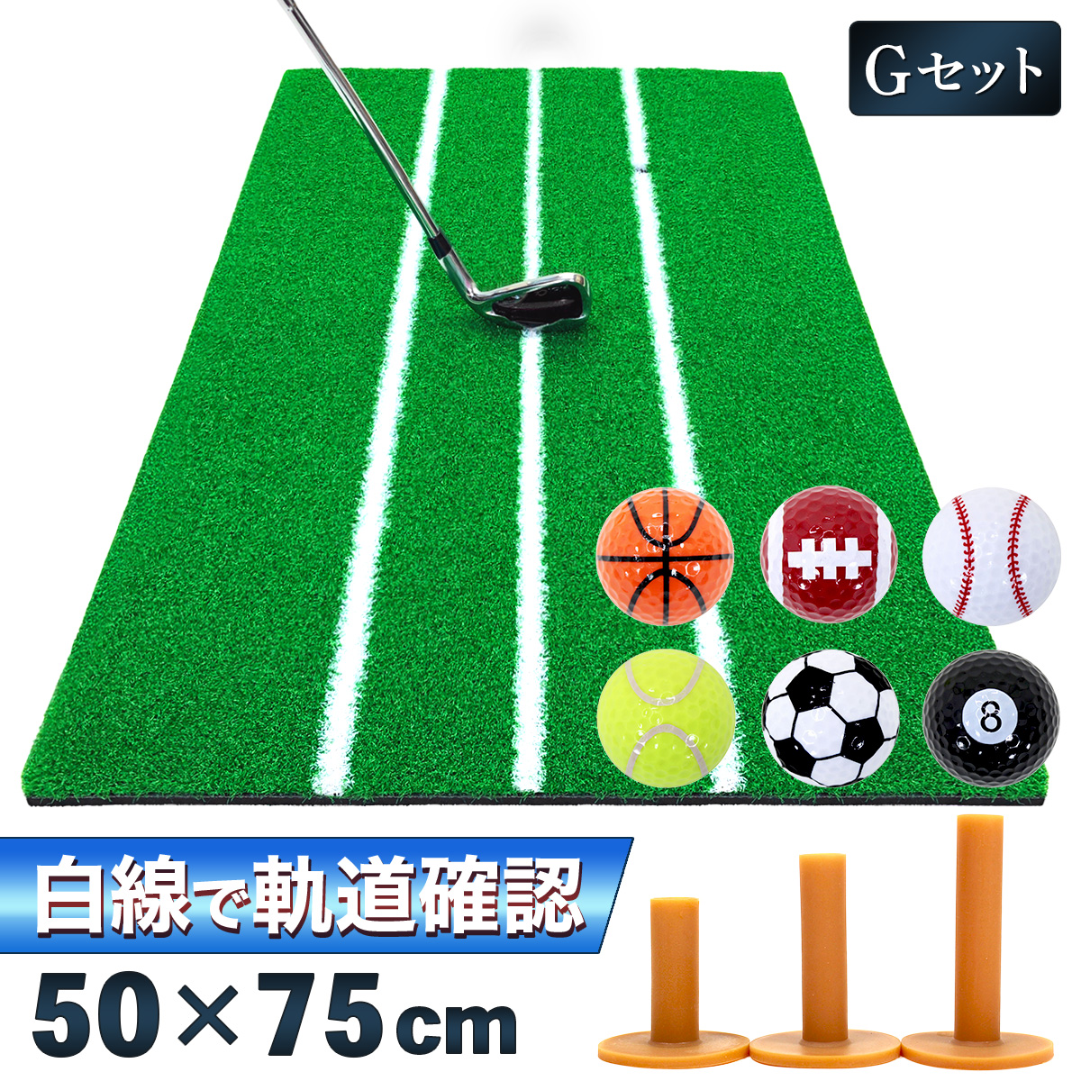 ゴルフマット 白線 ゴルフ 練習 マット 素振り 軌道確認 スイング ドライバー アイアン パター 練習器具 室内 屋外 人工芝 SBR 50×75cm Gセット