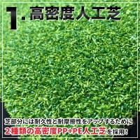 【2種類の高密度人工芝】元12mmの芝を圧縮して10mmにすることで高弾性があり、フラットな作りにしました。また硬さの違うPP芝+PE芝を組み合わせたことで最高に心地よいショットが打てるようになりました。