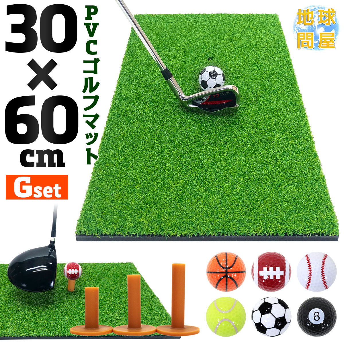 ゴルフマット プロ仕様 30×60cm ゴルフ 練習 マット 素振り スイング ドライバー アイアン 室内 屋外 高密度 人工芝 PVC ゴルフティー ゴルフボール Gセット