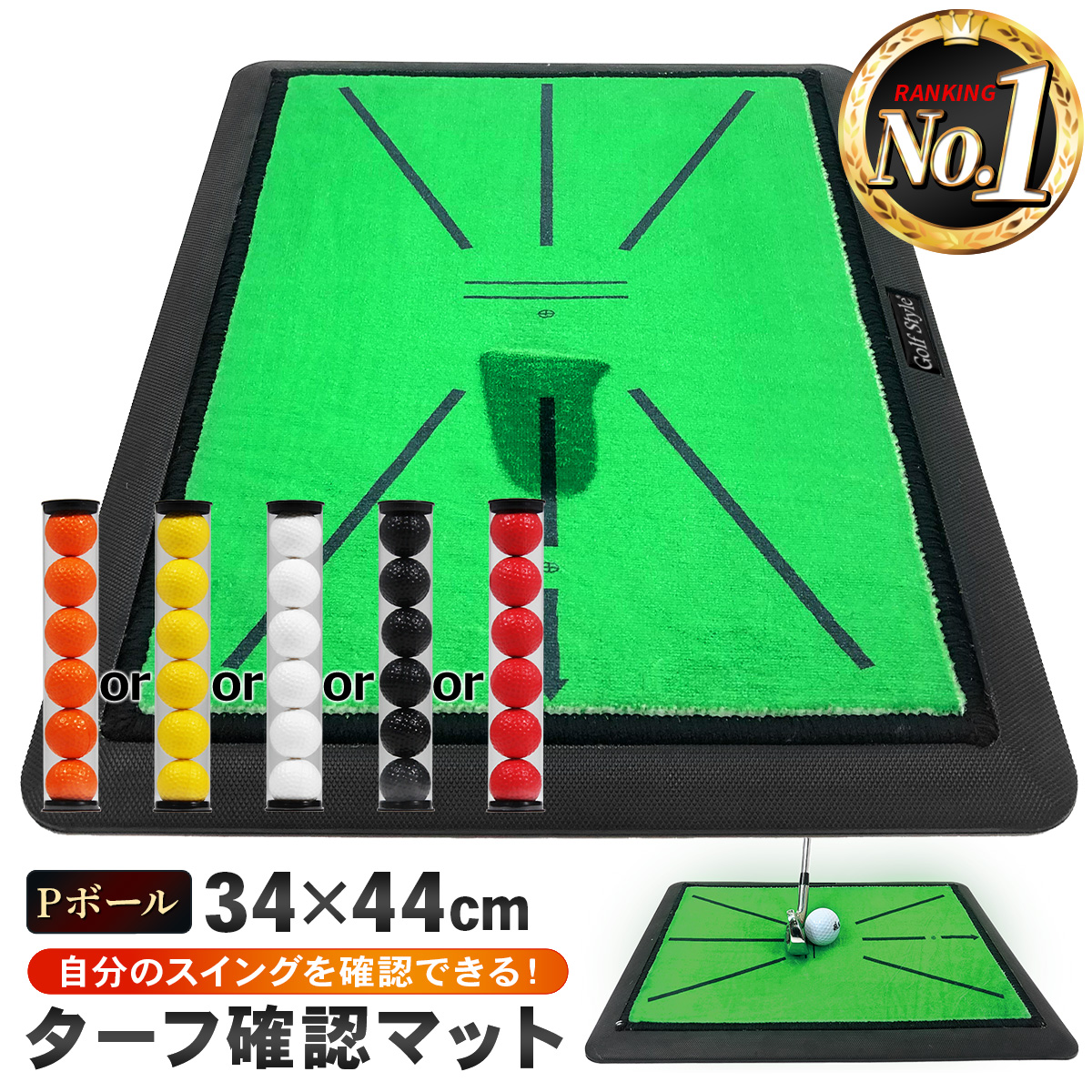 ダフりチェック ゴルフマット ターフ跡が確認できる ゴルフ 練習 マット ショットマット 練習用 ゴムマット 34×44cm ゴルフボール Pボールセット