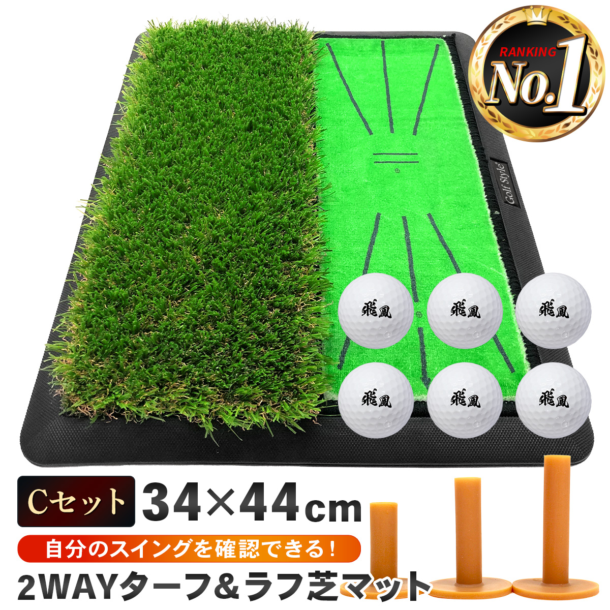 ダフりチェック ゴルフマット ターフ跡が確認できる 2WAY ターフ芝+ラフ芝 ゴルフ 練習 スイング ショットマット 34×44cm ゴルフティー ゴルフボール Cセット