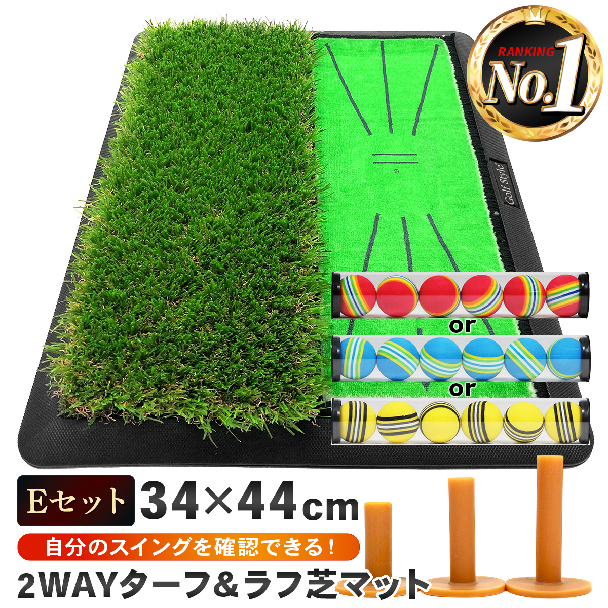ダフりチェック ゴルフマット ターフ跡が確認できる 2WAY ターフ芝+ラフ芝 ゴルフ 練習 スイング ショットマット 34×44cm ゴルフティー ゴルフボール Eセット