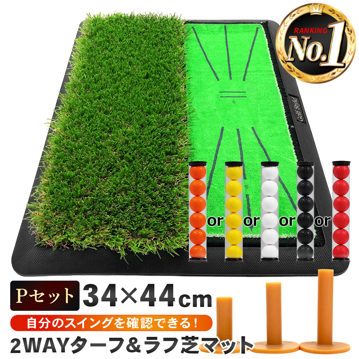 ダフりチェック ゴルフマット ターフ跡が確認できる 2WAY ターフ芝+ラフ芝 ゴルフ 練習 スイング ショットマット 34×44cm ゴルフティー ゴルフボール Pセット
