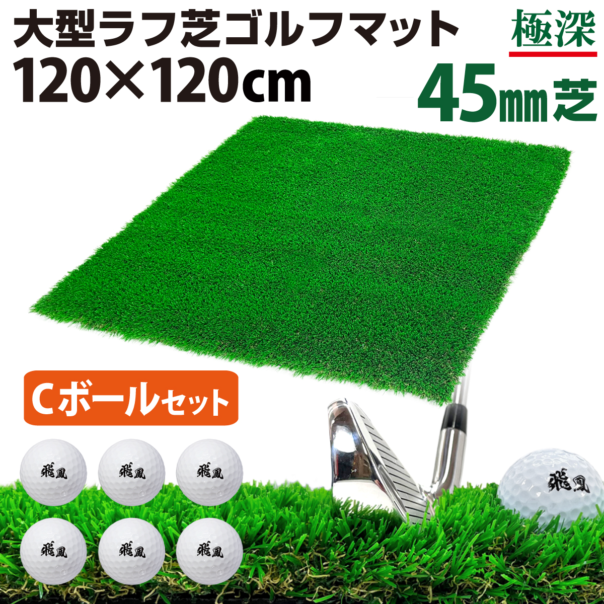 ゴルフマット 45mm ラフ芝 ゴルフ 練習 マット 120×120cm アイアン ショット アプローチ 練習用 Rough Turf 人工芝 室内 屋外 ラフ 芝生 ゴルフボール Cセット