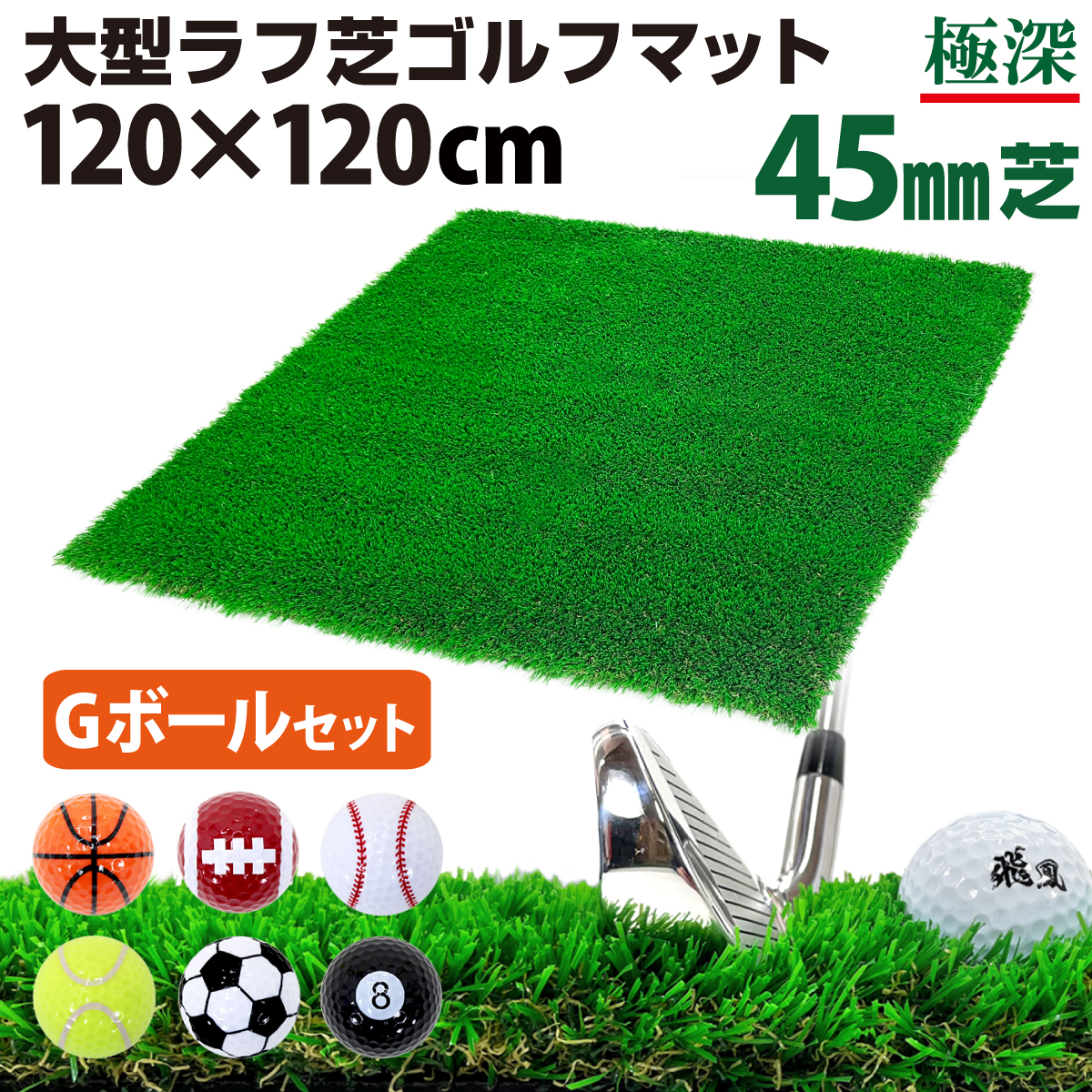 ゴルフマット 45mm ラフ芝 ゴルフ 練習 マット 120×120cm アイアン ショット アプローチ 練習用 Rough Turf 人工芝 室内 屋外 ラフ 芝生 ゴルフボール Gセット