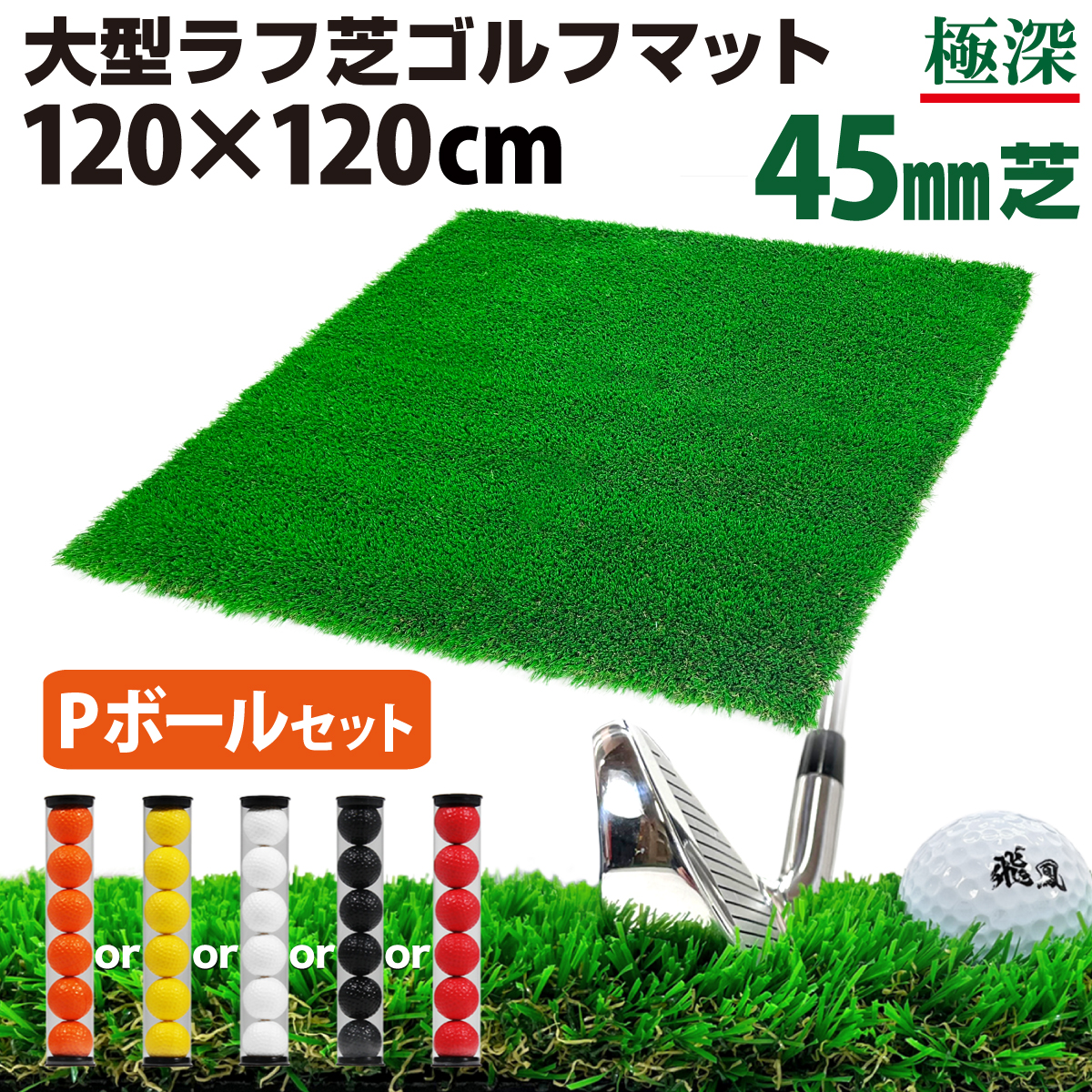 ゴルフマット 45mm ラフ芝 ゴルフ 練習 マット 120×120cm アイアン ショット アプローチ 練習用 Rough Turf 人工芝 室内 屋外 ラフ 芝生 ゴルフボール Pセット