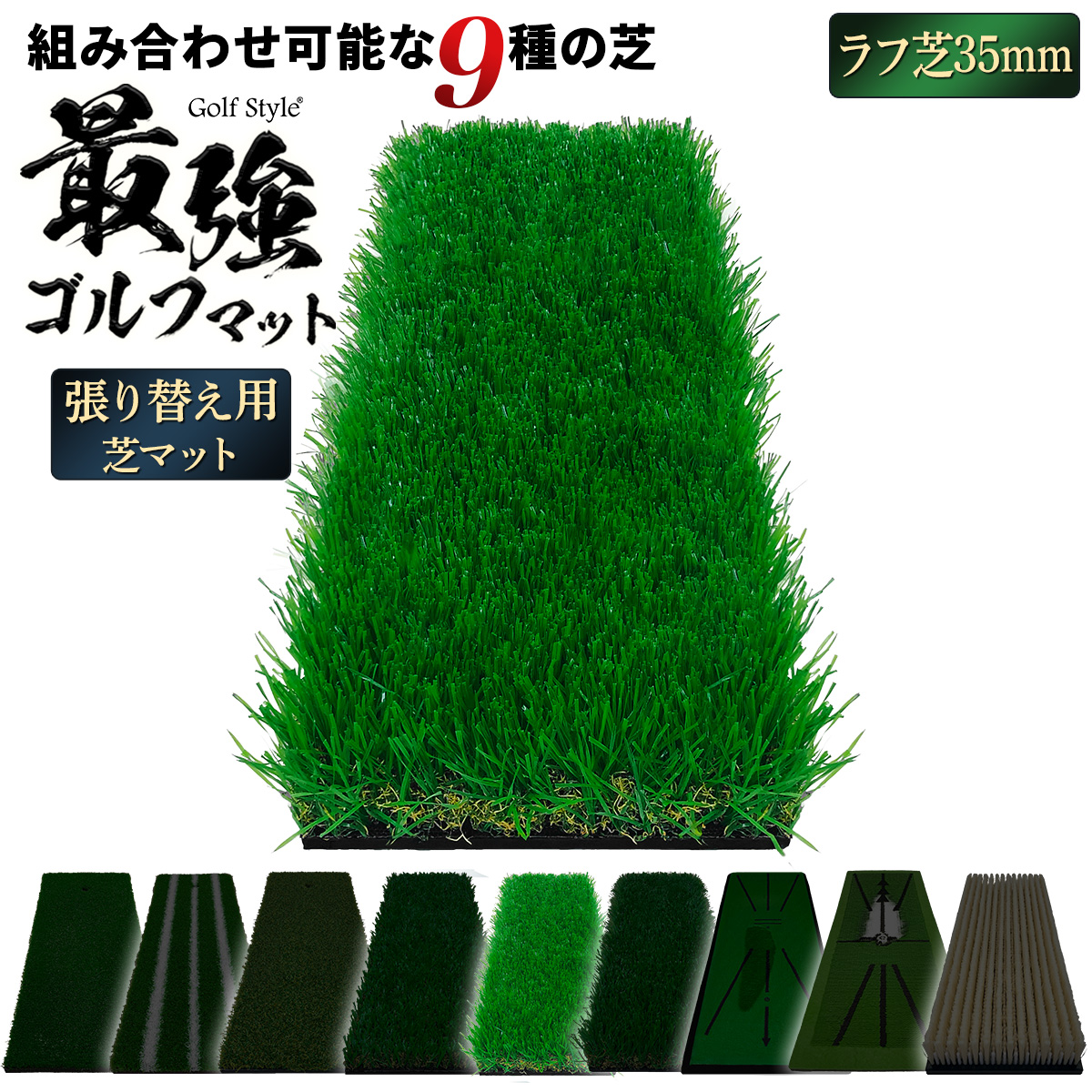 ゴルフマット 張り替え 芝のみ ゴルフ 練習 マット カスタマイズ 持ち運び ゴムマット 素振り ドライバー アイアン スイング 練習用 17×45cm (単品/35mmラフ芝)