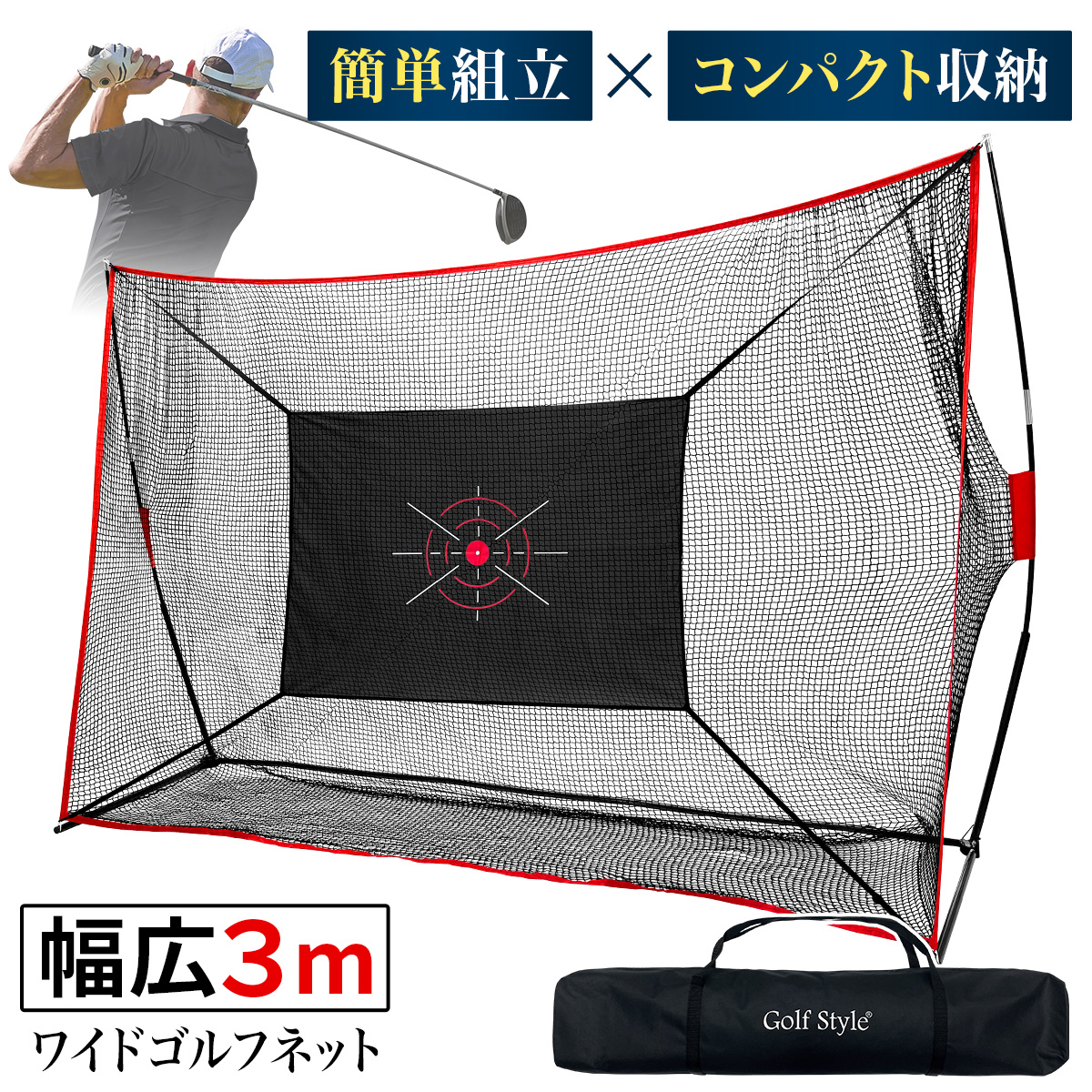 ゴルフネット 練習用 ネット 折りたたみ 持ち運び 屋外 室内 簡単設置 大型 ワイド ポータブル インパクト 練習器具 自宅 庭 ガレージ 3m サイズ