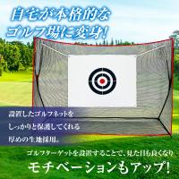 【ゴルフネットをしっかりと保護】買ったゴルフネット、そのまま使っていませんか?実はそのまま使うと、ボールの勢いでネットが破けたりしてしまいます。それを防ぐのがこのゴルフターゲット!ゴルフネットに紐で取り付けるだけの簡単設置で、ネットをしっかりと保護してくれます。ネットの大きさや用途に合わせて使える3サイズをご用意しました。