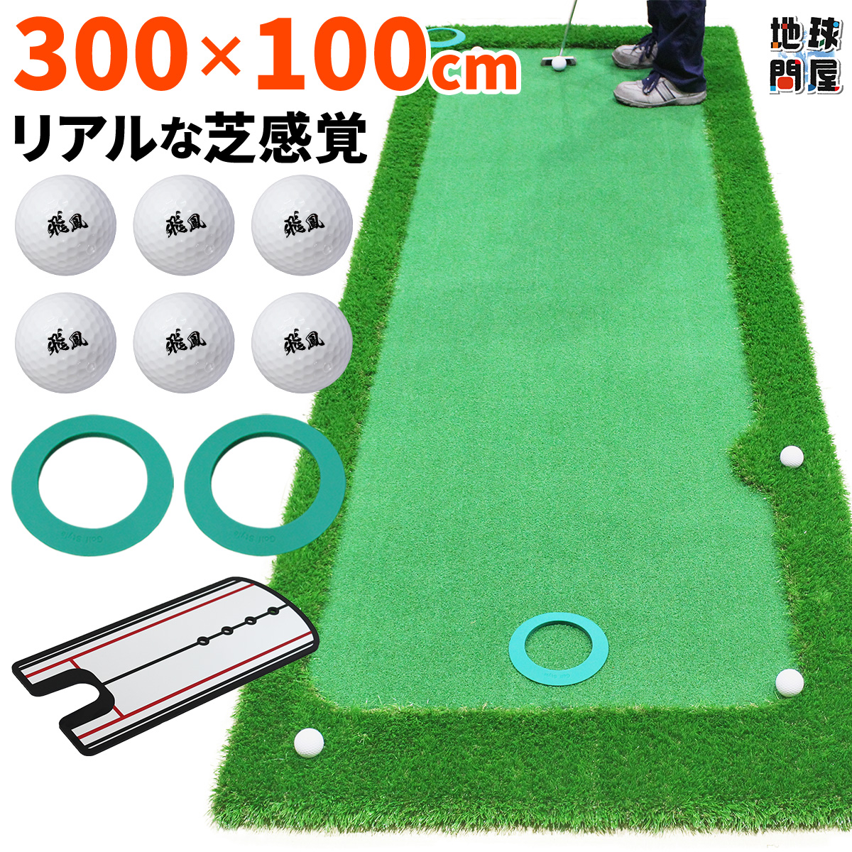 グリーンとラフの境目があり、ゴルフボールが床に落ちてゴロゴロ転がったりしません。