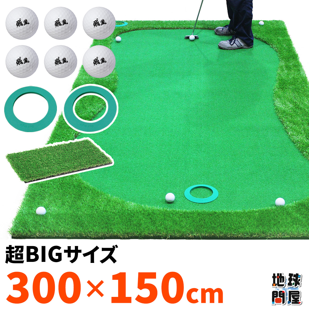 パターマット 3m ゴルフ パター ゴルフマット パッティング パター練習 ラフ 大型 室内 屋外 アプローチ 人工芝 SBR 特大 300×150cm Gシリーズ SBRL30CS2セット