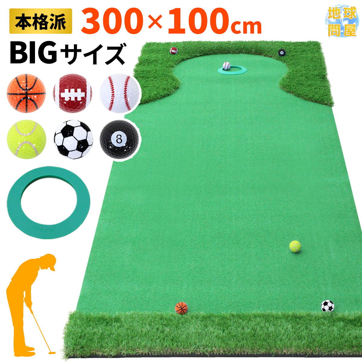 パターマット 3m ゴルフ パター練習 ラフ 大型 厚手 室内 屋外 練習用 人工芝 SBR 本格派 300×100cm 特大 Ωシリーズ ゴルフボール パターカップ付き GSセット