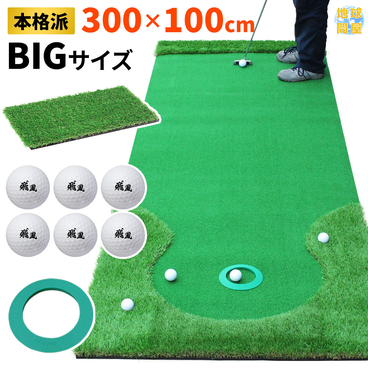 パターマット 3m ゴルフ パター練習 ラフ 大型 厚手 室内 屋外 アプローチ 人工芝 300×100cm 特大 Ωシリーズ ゴルフボール ラフ芝マット付き SBRL30CSセット