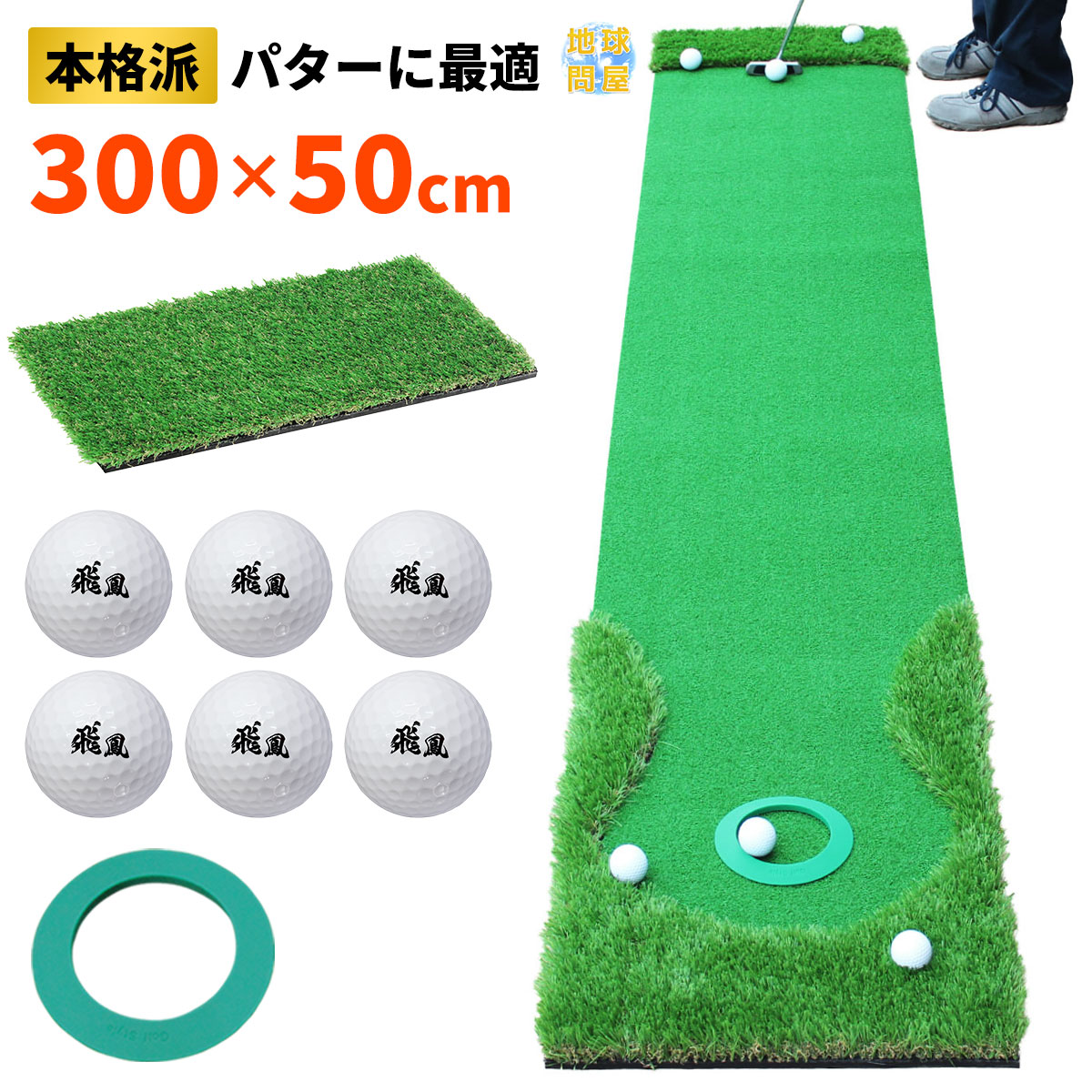 パターマット 3m ゴルフ パター練習 ラフ 大型 厚手 室内 屋外 練習用 人工芝 SBR 本格派 300×50cm Ωシリーズ ゴルフボール ラフ芝マット付き SBRL30CSセット