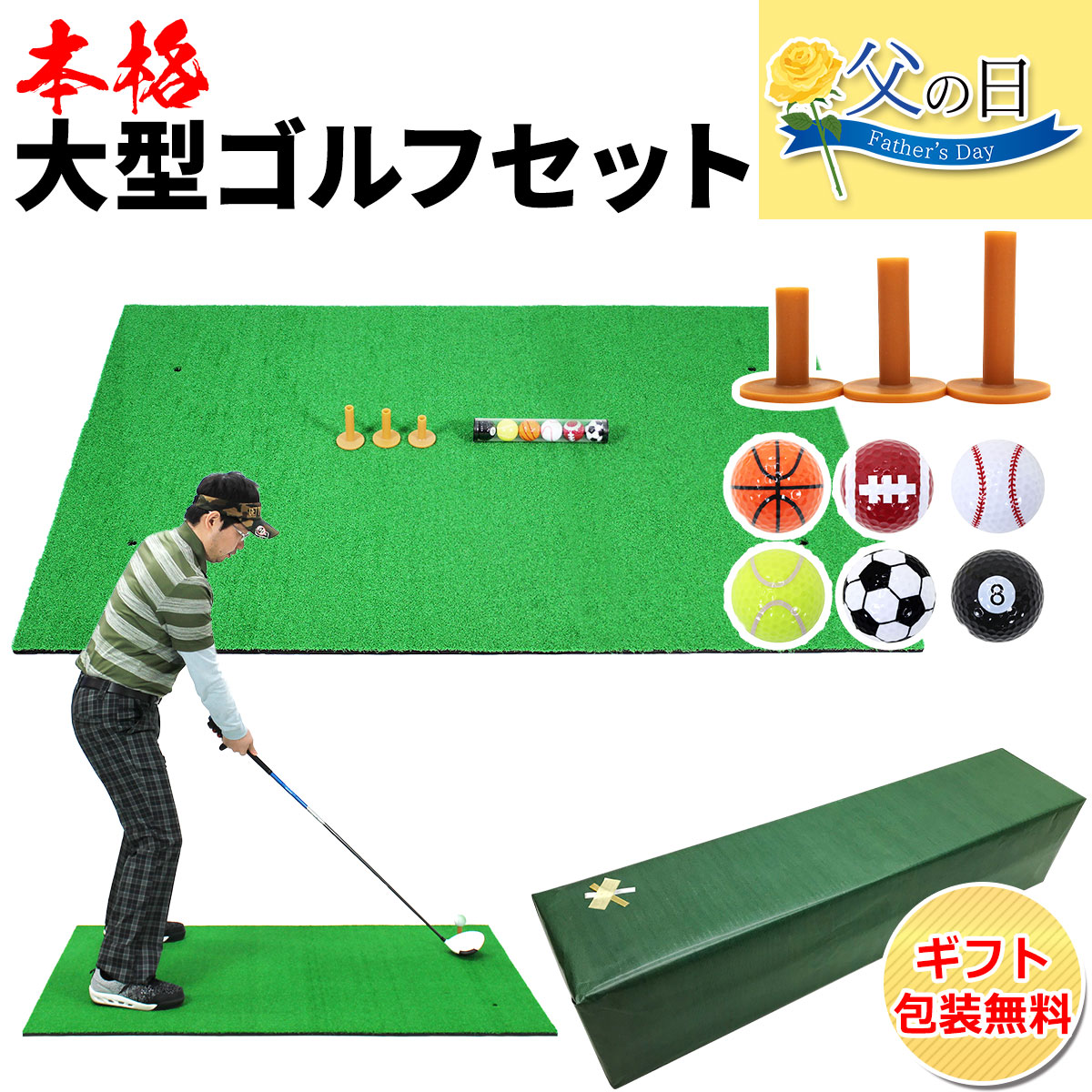 【父の日】 ゴルフセット ギフト プレゼント ゴルフ 練習 マット 大型 100×150cm 素振り スイング 練習用 ボール ゴムティー