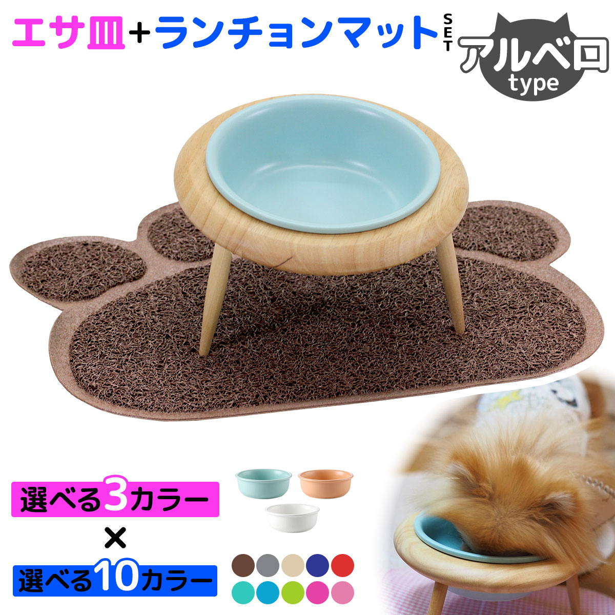 えさ皿 ランチョンマット 肉球型 セット 猫 犬 食器 おしゃれ かわいい えさ 皿 フードボウル ペット マット 食べやすい 傾斜 滑り止め 陶器 アルベロスタンド