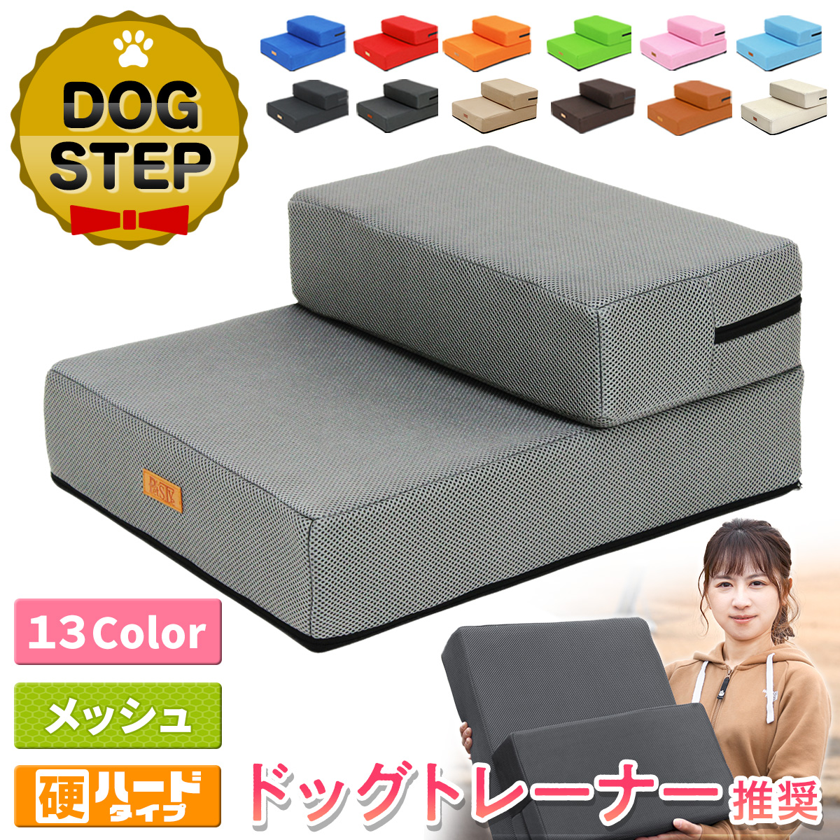 【ドッグトレーナー推奨】 ドッグステップ 犬 階段 ペット 犬用 ステップ 2段 通気性 おしゃれ 送料無料 メッシュ生地 硬めタイプ