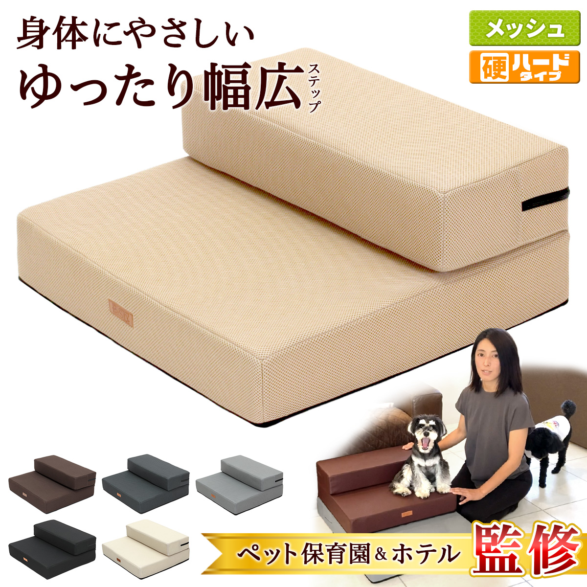 ドッグステップ 犬 幅広 55cm 2段 階段 ペット 犬用 ステップ 通気性 おしゃれ メッシュ生地 ペットスロープ 硬めタイプ 【ペット保育園&ホテル監修】