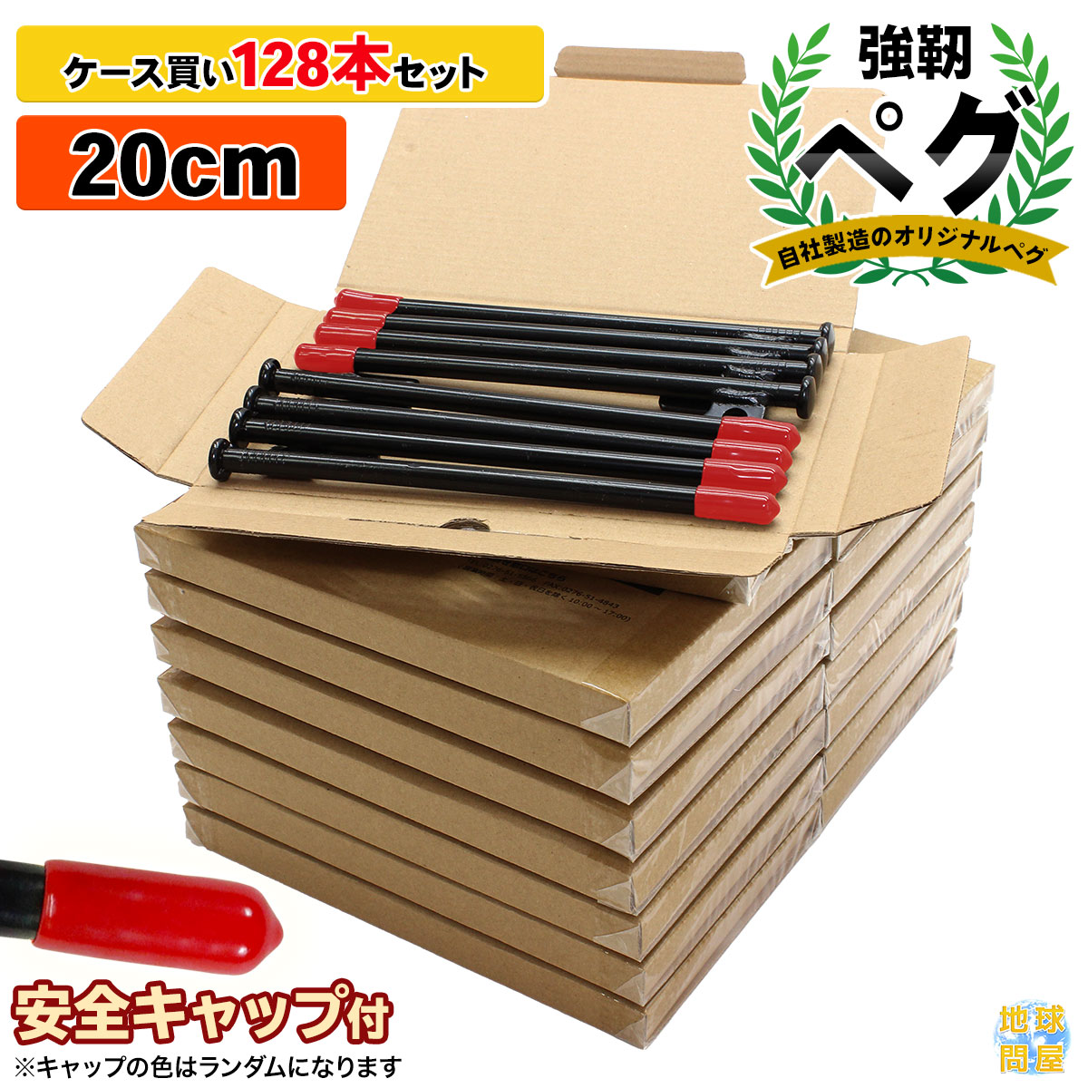ペグ 20cm 強靭 スチールペグ キャンプ テント タープ 設営 レーザー溶接 伸線加工 防錆塗装 安全キャップ付き 128本セット