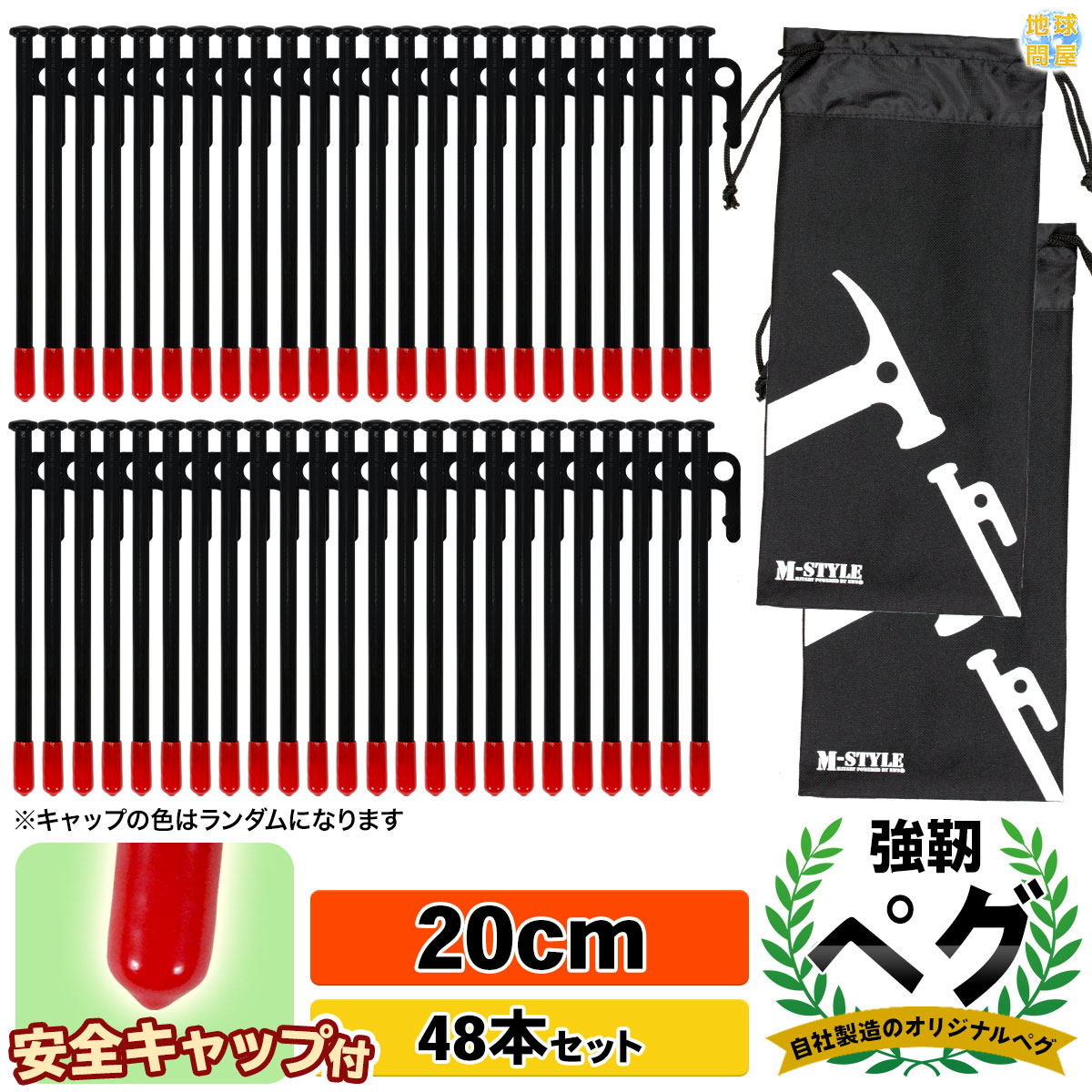 ペグ 20cm 強靭 スチールペグ キャンプ テント タープ 設営 レーザー溶接 伸線加工 防錆塗装 安全キャップ付き 48本セット