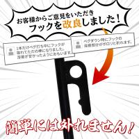 【レーザー溶接フック+伸線加工で一体構造】フック部分はレーザー溶接により隙間の少ない一体構造を採用。さらに、プレス加工により鉄材を10mmから9mmへ減肉し、加工硬化によって強度を高めています。負荷のかかる場面にも配慮した設計です。