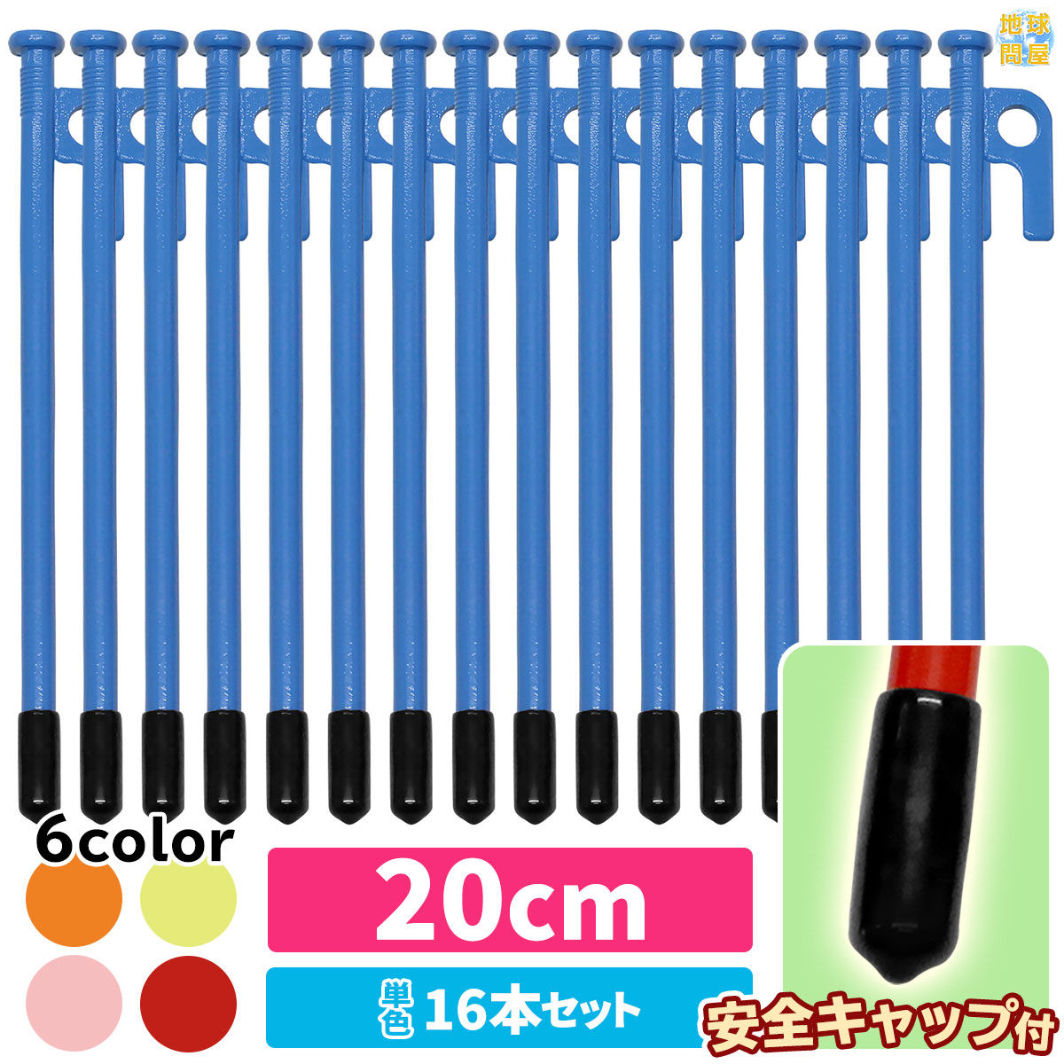 ペグ 20cm 強靭 スチールペグ キャンプ テント タープ 設営 レーザー溶接 伸線加工 防錆塗装 安全キャップ付き 16本セット